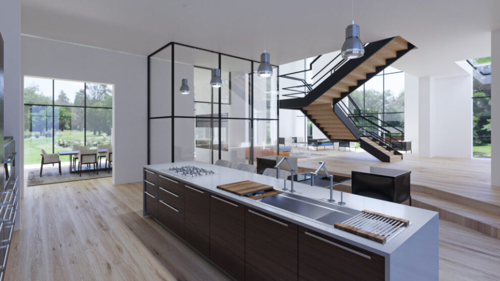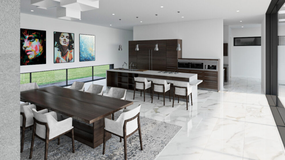 Step into the ultimate entertainer’s haven, where spacious interiors and breathtaking vistas seamlessly blend together. The Family Room, adorned with floor-to-ceiling windows, offers a stunning panorama that invites you to step outside and indulge in the zero-edge Swimming Pool and hot tub. An architectural marvel, the kitchen stands tall with its soaring ceilings and sophisticated wine racks, effortlessly connecting the heart of the home to the Family Room, facilitating seamless socializing and culinary delights.