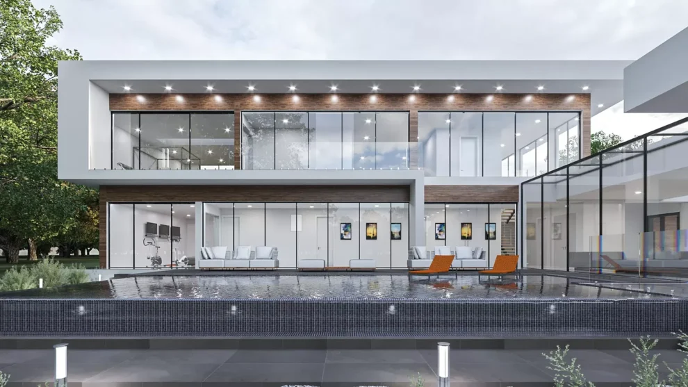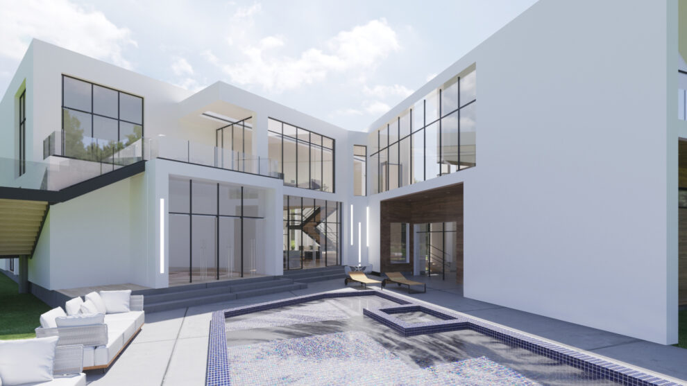 This expansive residence boasts four bedrooms, each with its own en suite bath, alongside an additional fifth bathroom, ensuring comfort and convenience for all. With over 6700 square feet of meticulously designed living space, there’s ample room for both relaxation and entertainment. Descending the glass-encased hallway on the first floor, discover three generously-sized bedrooms and a flexible space adaptable for entertaining, exercise, or leisurely pursuits. Ascending to the second level unveils an expansive open-concept office, flooded with natural light, perfect for productivity. Entering the master wing, be greeted by illuminated skylights, a balcony overlooking the serene pool, and a luxurious open-concept master bath and walk-in closet, promising a sanctuary of relaxation and indulgence. This meticulously designed abode epitomizes the perfect blend of sophistication and practicality, promising an unparalleled lifestyle of luxury and comfort.